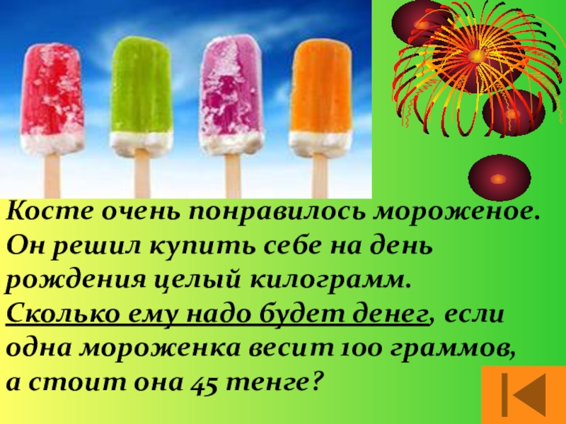 Слайд 17Косте очень понравилось мороженое. Он решил купить себе на день рождения