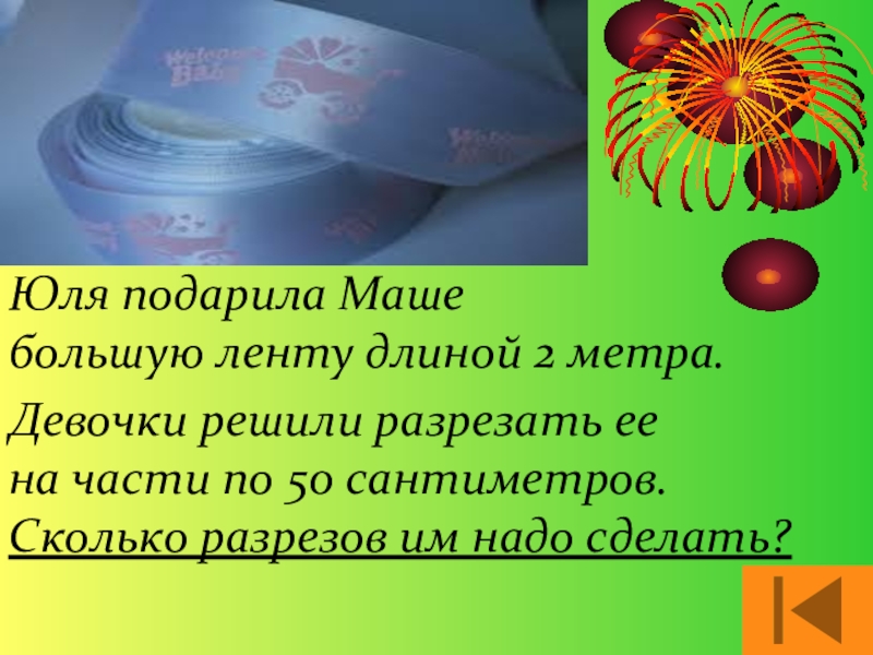 Девочки решили разрезать ее на части по 50 сантиметров. Сколько разрезов им надо сделать?