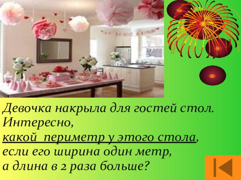 Интересно, какой периметр у этого стола, если его ширина один метр, а длина в 2 раза больше?