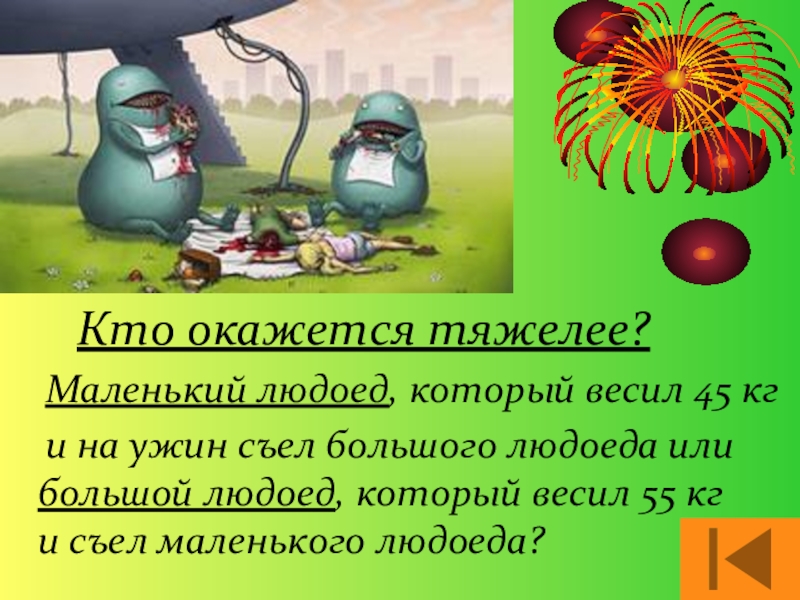 Кто окажется тяжелее?   Маленький людоед, который весил 45 кг   и