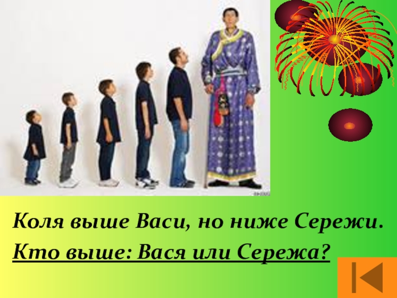 Слайд 9Коля выше Васи, но ниже Сережи.