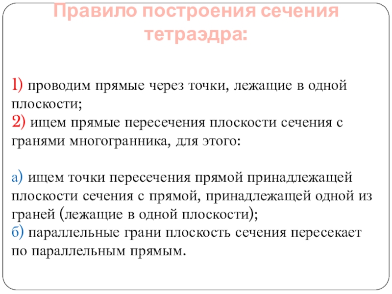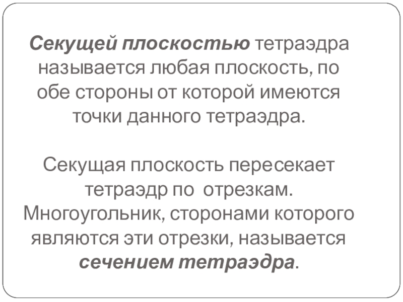 Слайд 44Секущей плоскостью тетраэдра называется любая плоскость, по обе стороны от которой