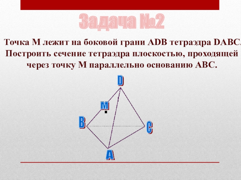 Точка М лежит на боковой грани ADB тетраэдра DABC. Построить