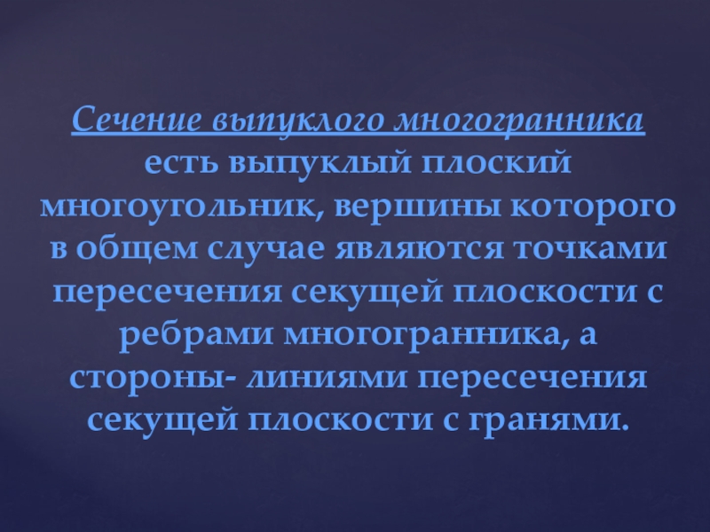 случае являются точками пересечения секущей плоскости с ребрами многогранника, а стороны- линиями пересечения секущей плоскости с гранями.