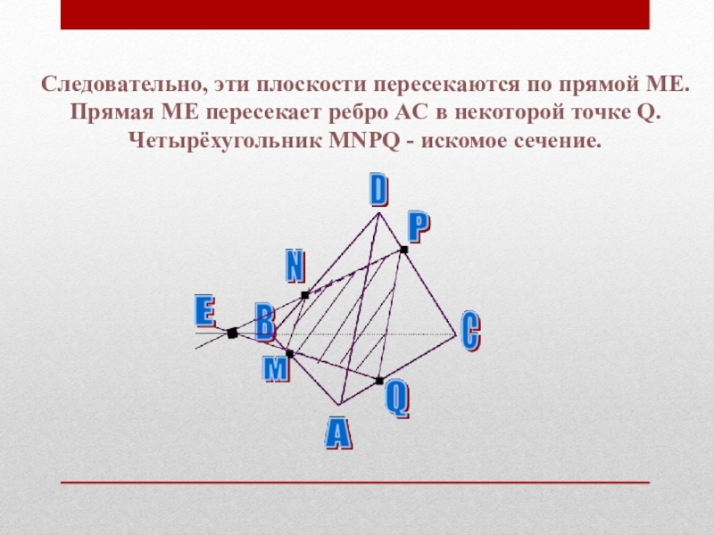 Слайд 54Следовательно, эти плоскости пересекаются по прямой ME. Прямая ME пересекает ребро