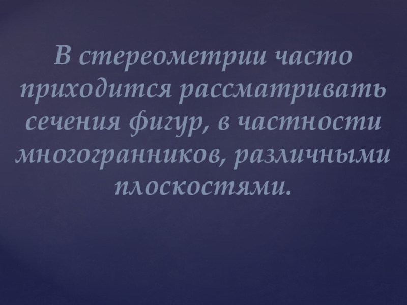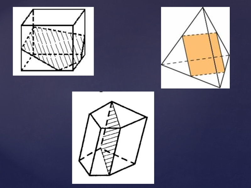 Слайд 29В стереометрии часто приходится рассматривать сечения фигур, в частности многогранников, различными