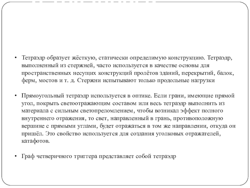Тетраэдр образует жёсткую, статически определимую конструкцию. Тетраэдр, выполненный из