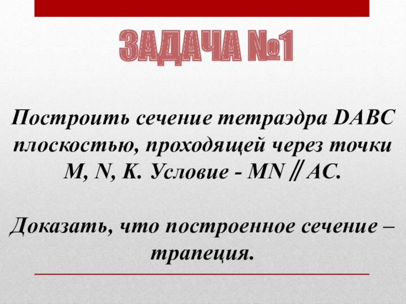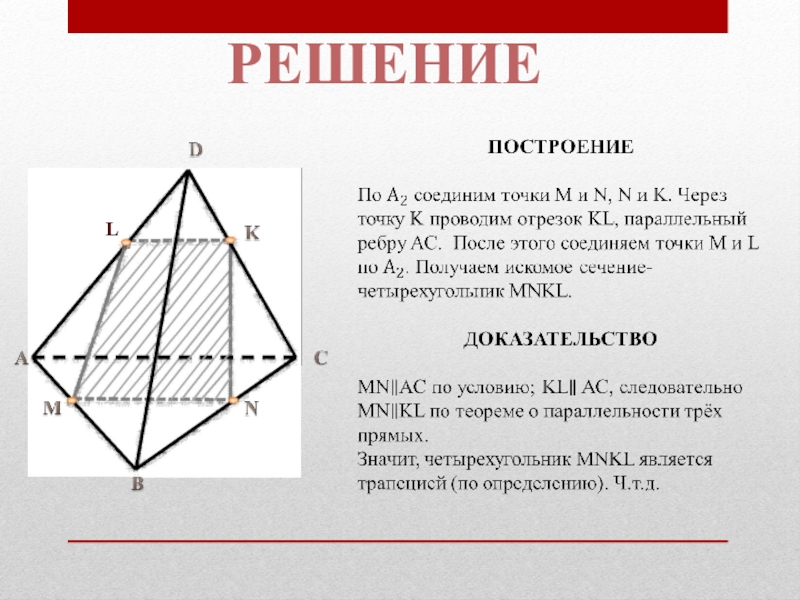 Построить сечение тетраэдра DABC плоскостью, проходящей через точки M, N,