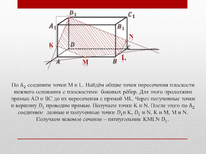 Слайд 63Эта прямая пересекается с рёбрами нижнего основания в точках E и