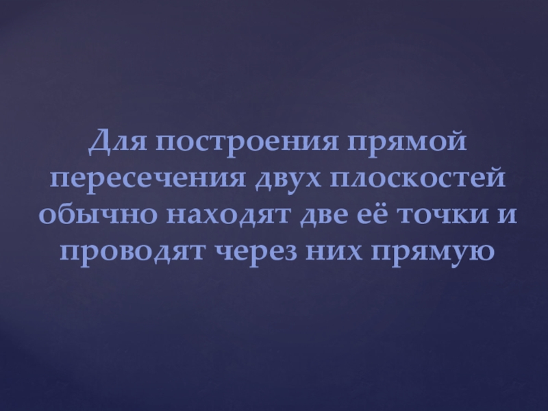 Слайд 32Для построения прямой пересечения двух плоскостей обычно находят две её точки