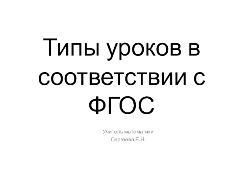 Типы уроков в соответствии с ФГОСУчитель математикиСергеева Е.Н.