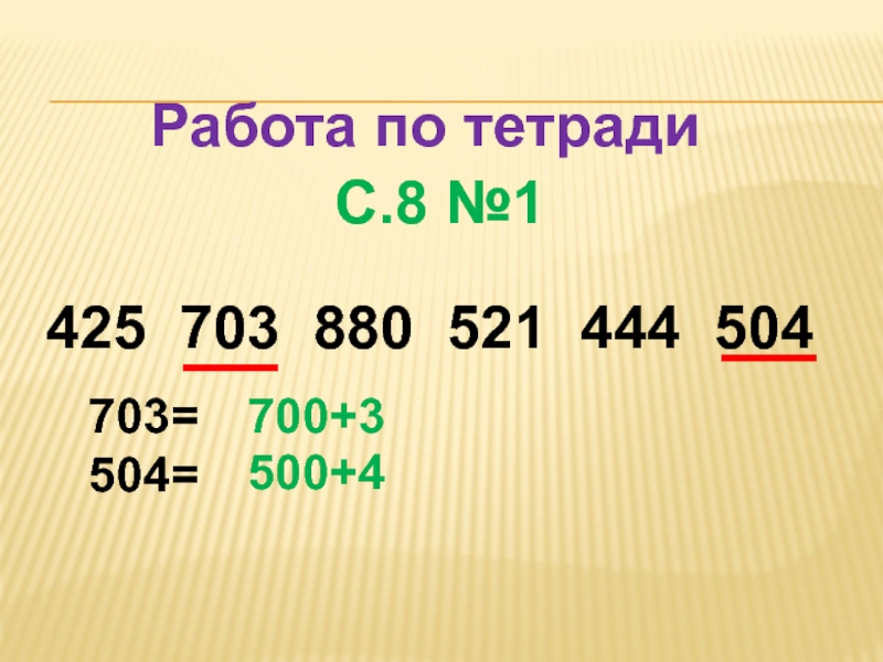Работа по тетрадиС.8 №1425 703 880 521 444 504703=504=700+3500+4