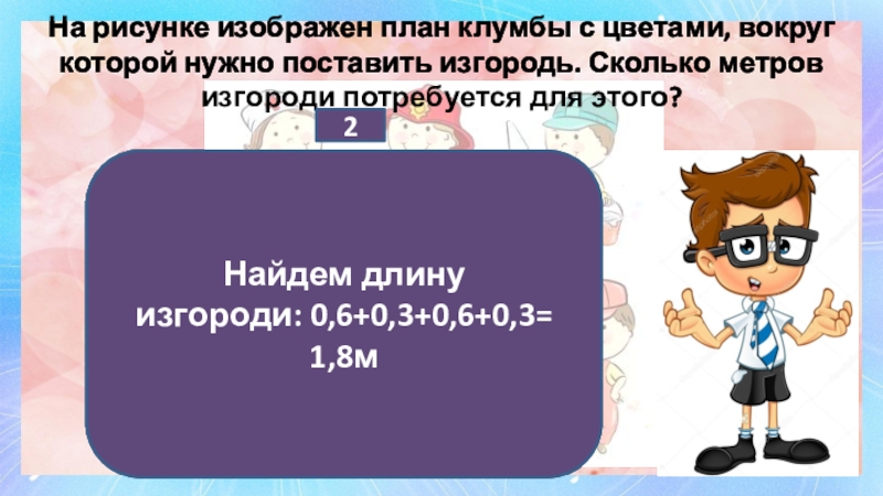 Найдем длину изгороди: 0,6+0,3+0,6+0,3=