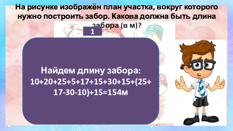 Найдем длину забора: 10+20+25+5+17+15+30+15+(25+17-30-10)+15=154м