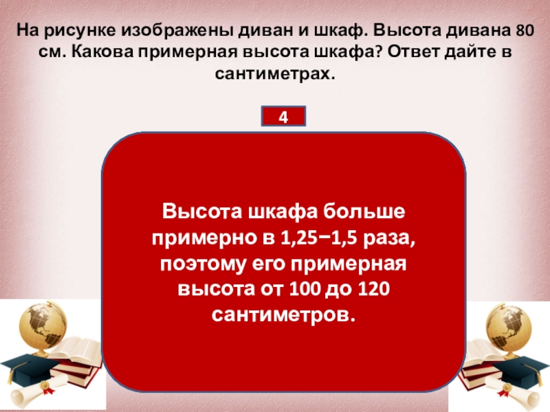 Высота шкафа больше примерно в 1,25−1,5 раза, поэтому его примерная высота от 100 до 120 сантиметров.