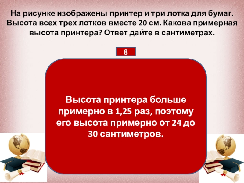 Высота принтера больше примерно в 1,25 раз, поэтому его высота примерно от 24 до 30 сантиметров.