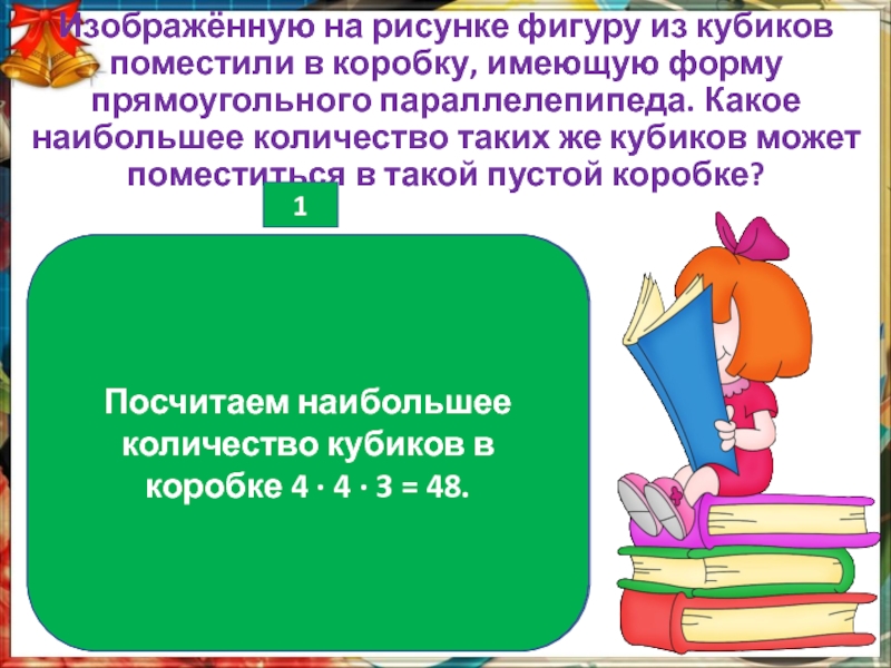 Посчитаем наибольшее количество кубиков в коробке 4 · 4 · 3 = 48.