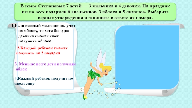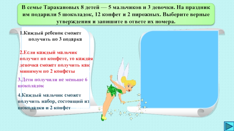 1.Каждый ребенок сможет получить по 3 подарка неверно