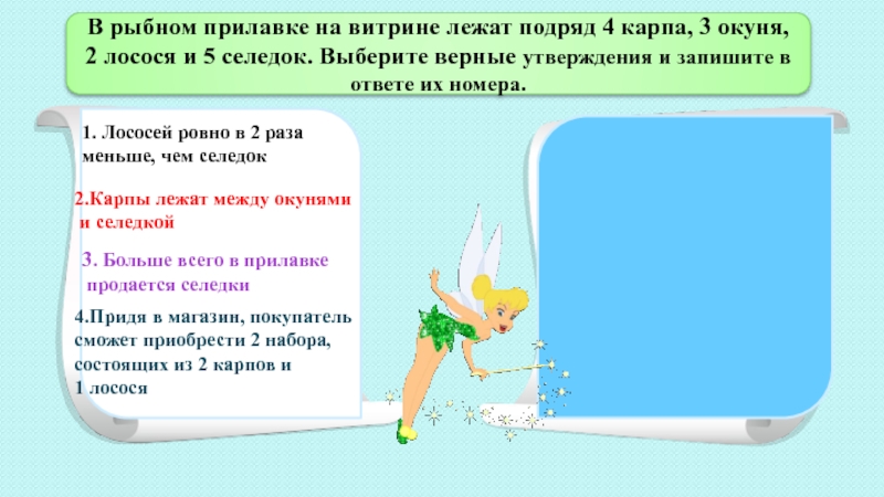 1. Лососей ровно в 2 раза меньше, чем селедок неверно