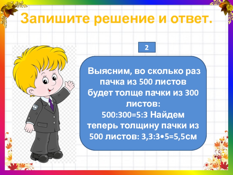500:300=5:3 Найдем теперь толщину пачки из 500 листов: 3,3:3•5=5,5см