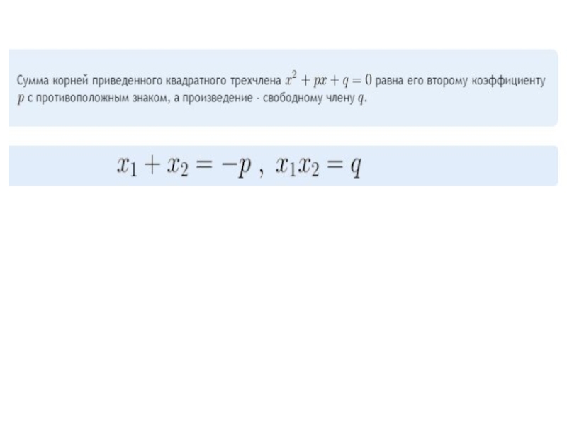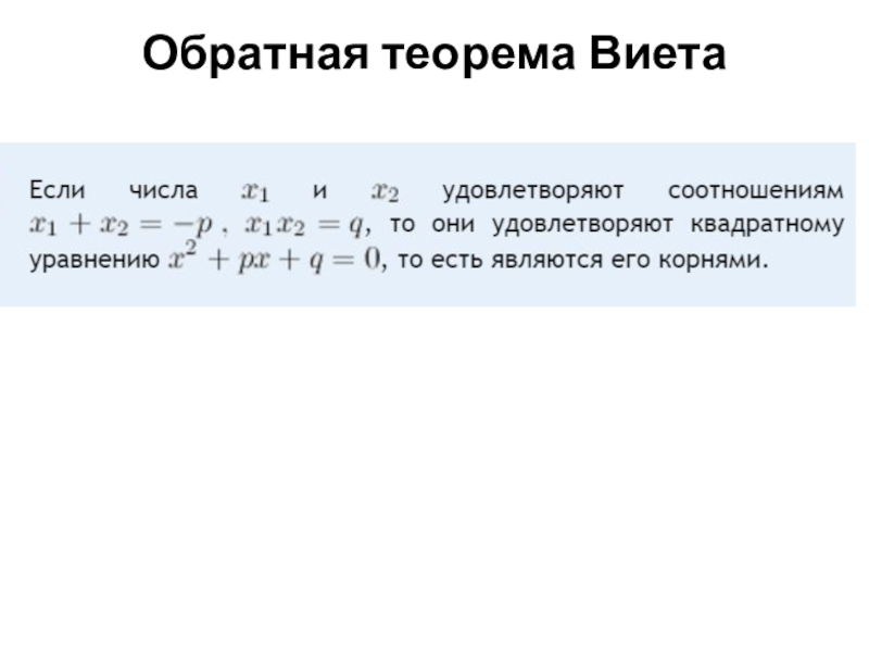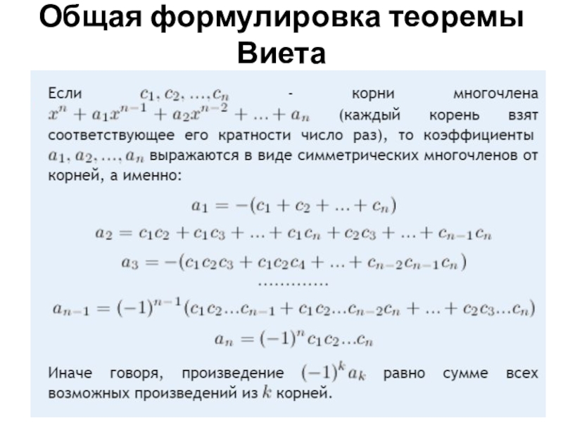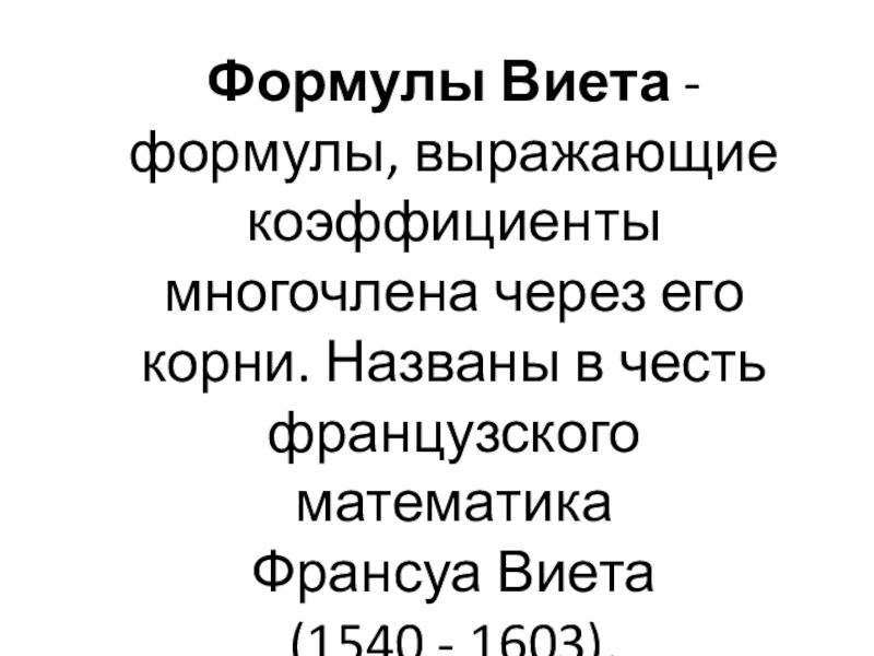 Слайд 10Формулы Виета - формулы, выражающие коэффициенты многочлена через его корни. Названы в
