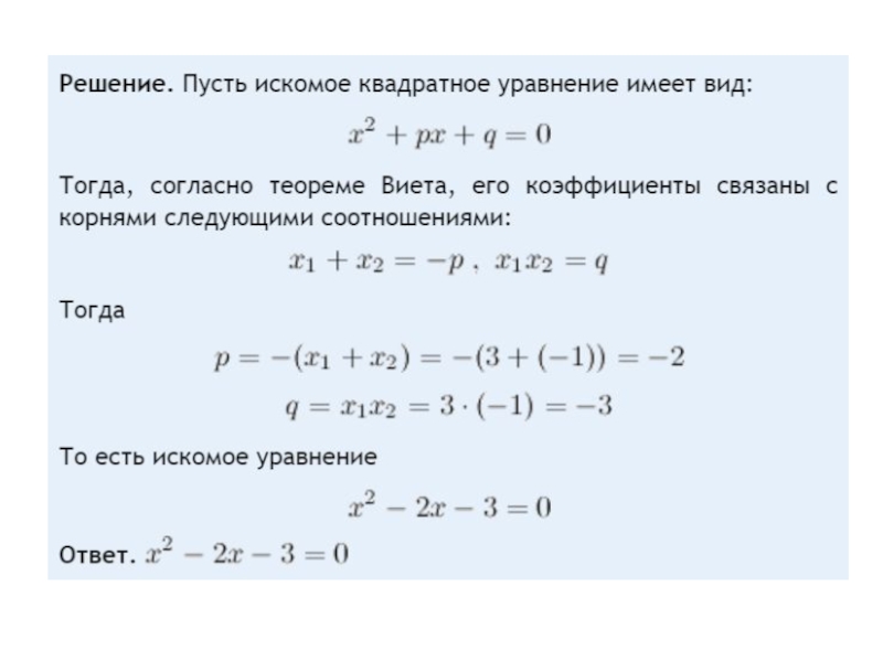Презентация, доклад на тему Творческий проект Этеновой Людмилы Теорема Виета