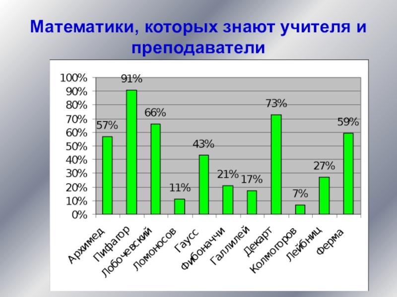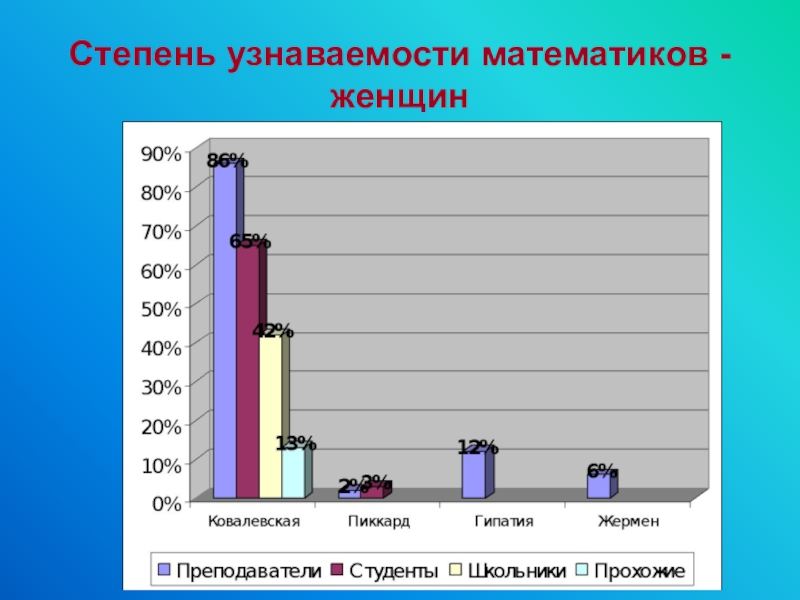 математиков сегодня наиболее узнаваем, было решено провести опрос. Нужно было назвать математиков мужчин и математиков женщин.