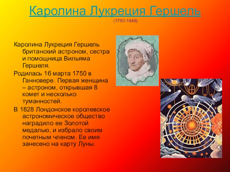 Каролина Лукреция Гершель британский астроном, сестра и помощница