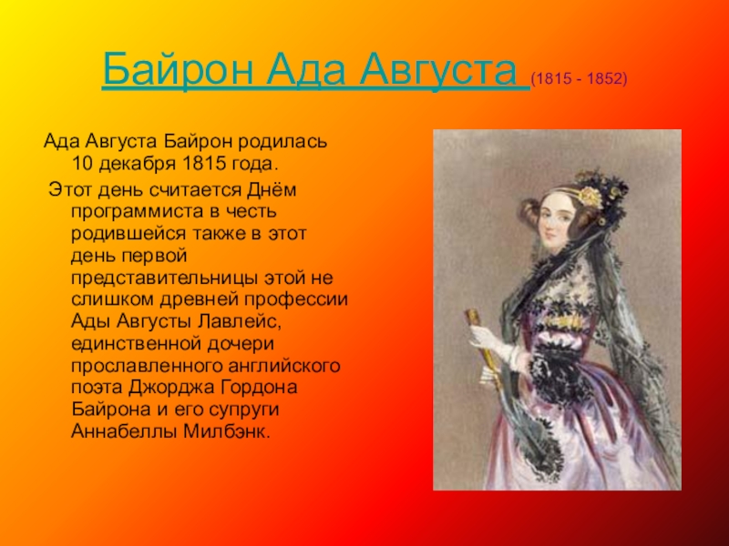 Слайд 16Байрон Ада Августа (1815 - 1852)
