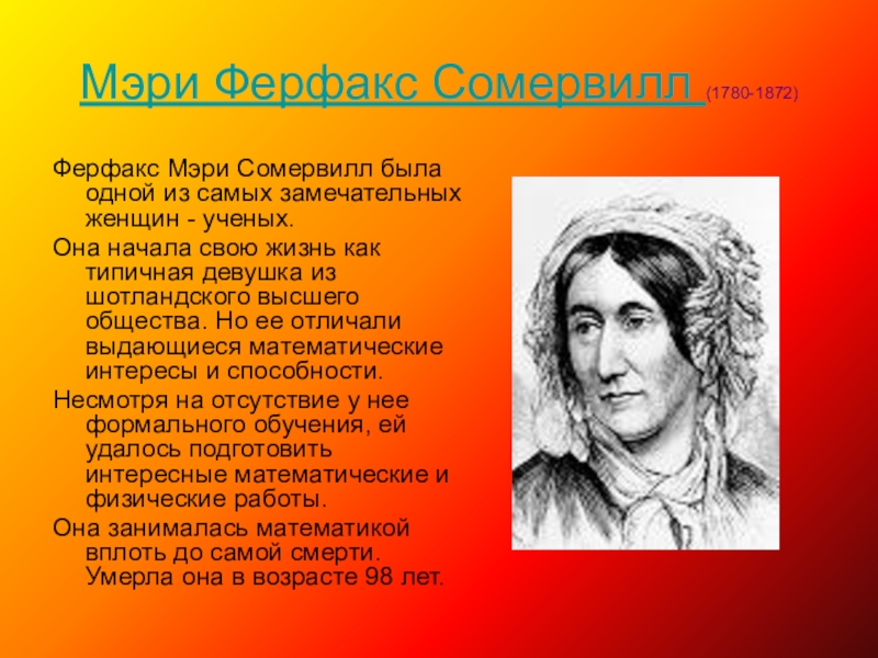 Слайд 15Мэри Ферфакс Сомервилл (1780-1872)