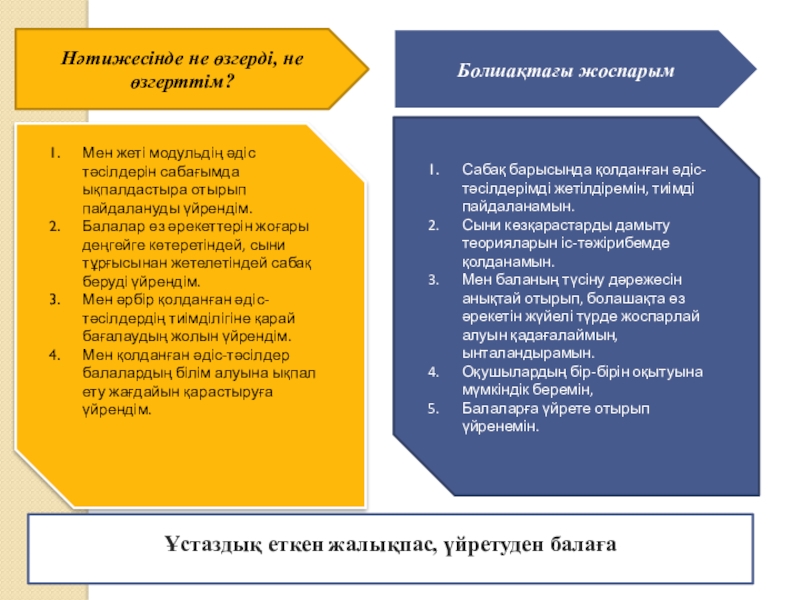 Сабақ барысында қолданған әдіс- тәсілдерімді жетілдіремін, тиімді пайдаланамын.