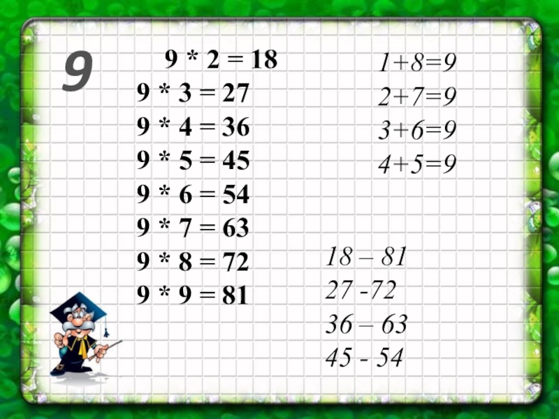 9 * 7 = 6 3 7 – 1 = 6 - десятки