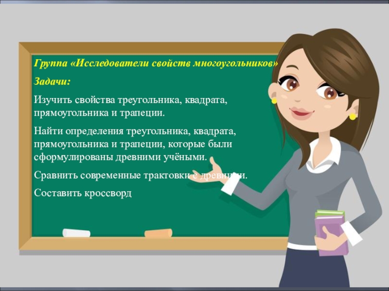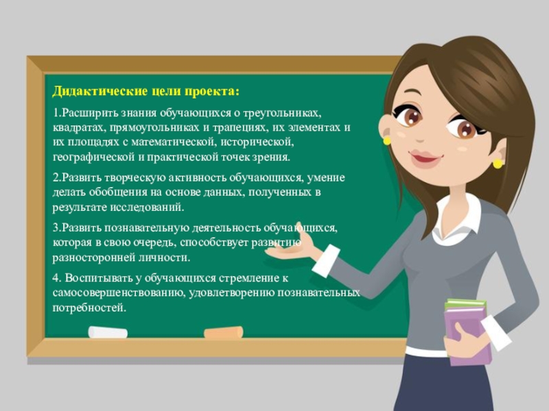 1.Расширить знания обучающихся о треугольниках, квадратах, прямоугольниках и трапециях,