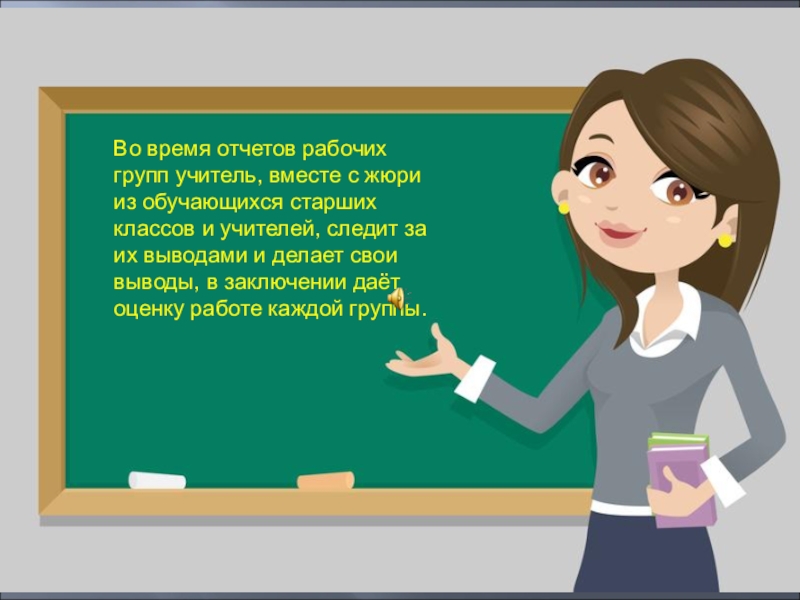 Во время отчетов рабочих групп учитель, вместе с жюри из обучающихся