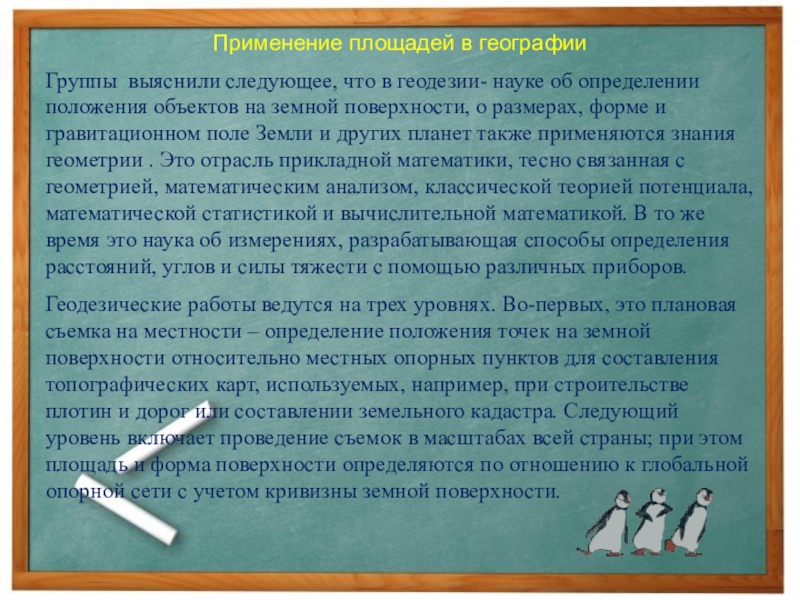 Группы выяснили следующее, что в геодезии- науке об определении
