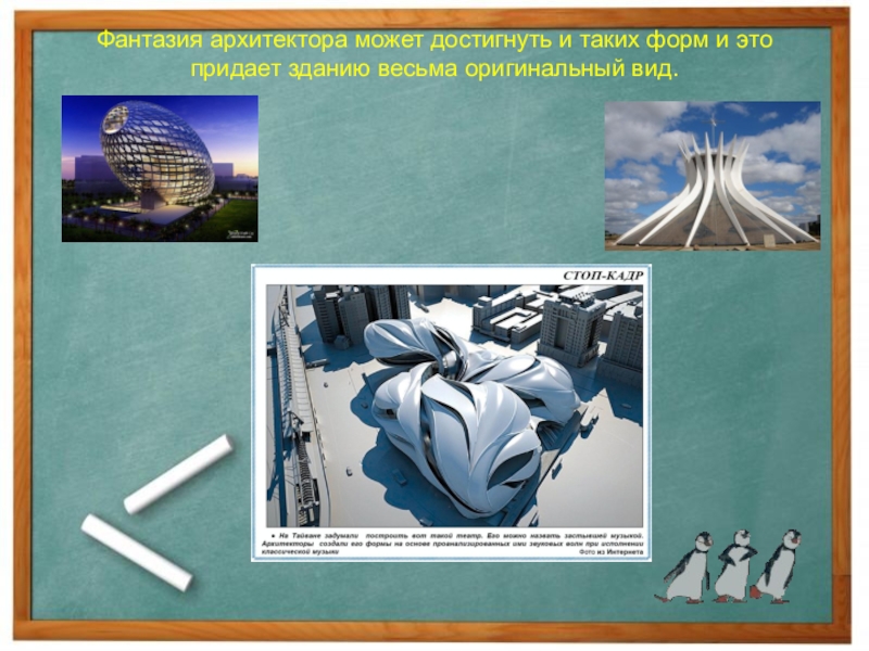 Фантазия архитектора может достигнуть и таких форм и это придает зданию