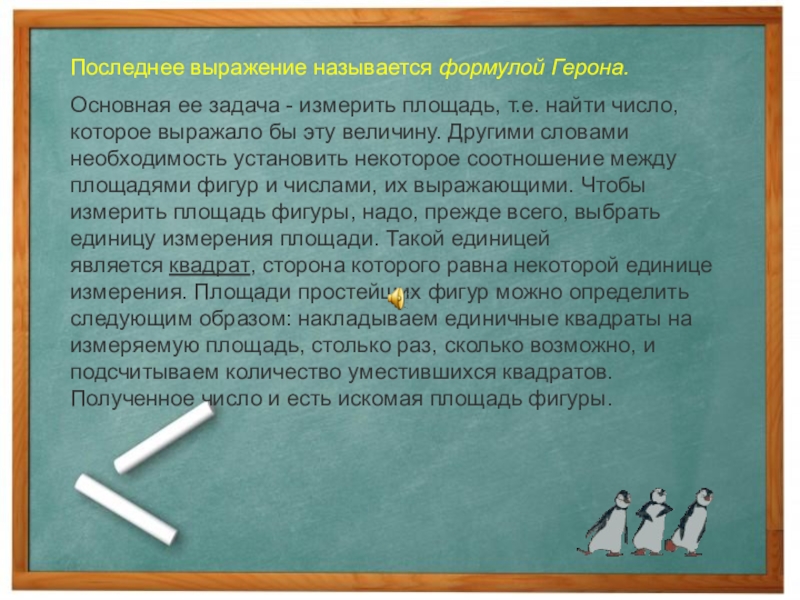 Одна из главных величин в геометрии - площадь.