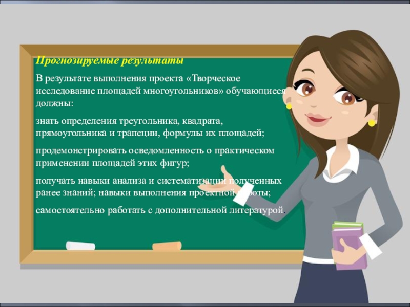 В результате выполнения проекта «Творческое исследование площадей многоугольников» обучающиеся должны:
