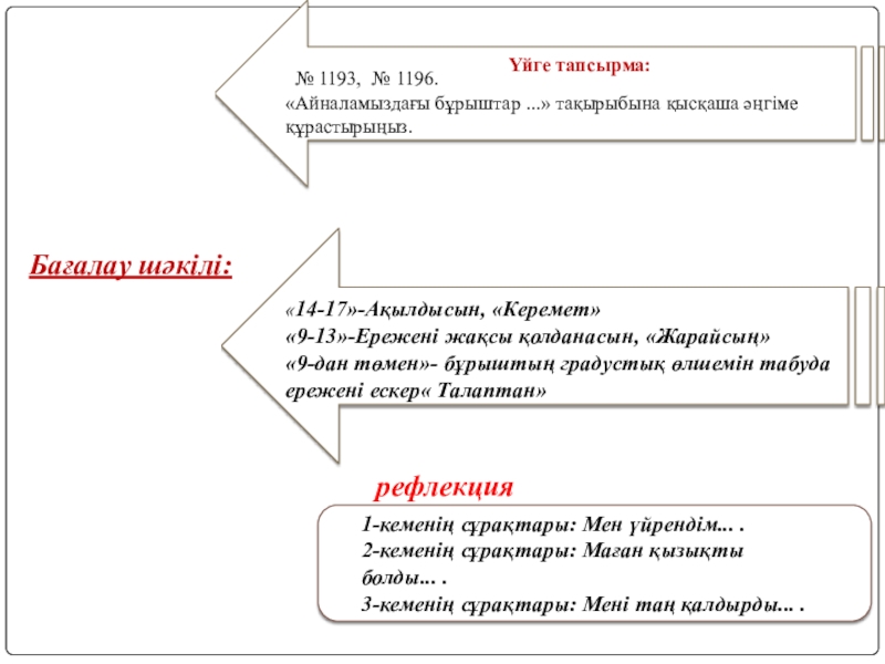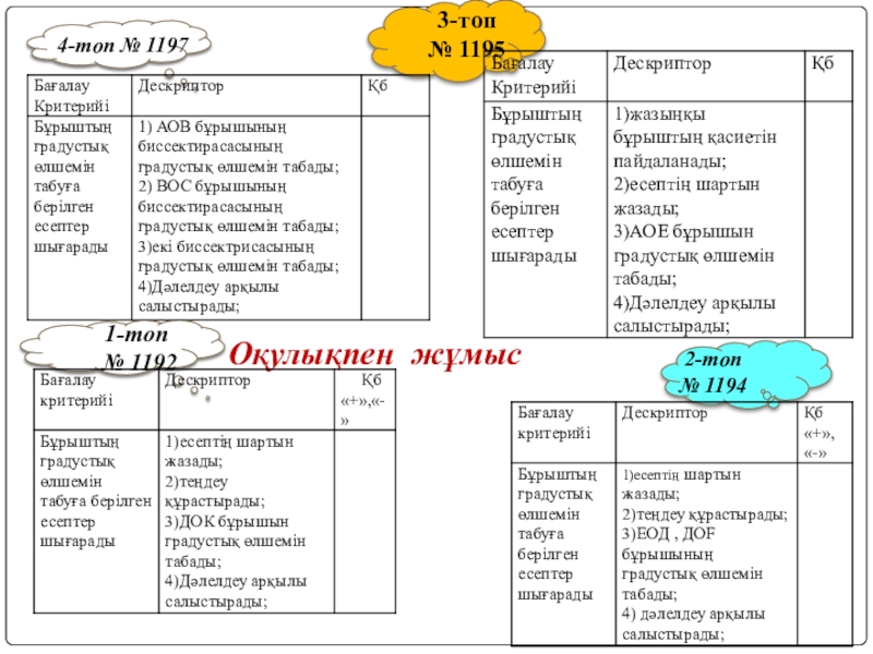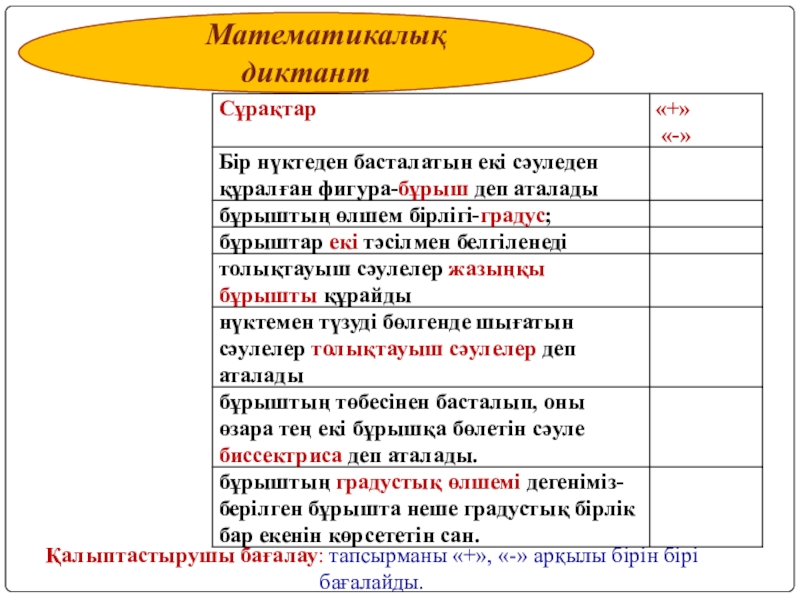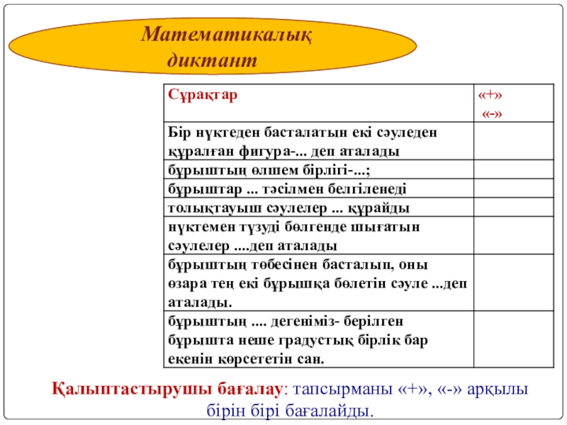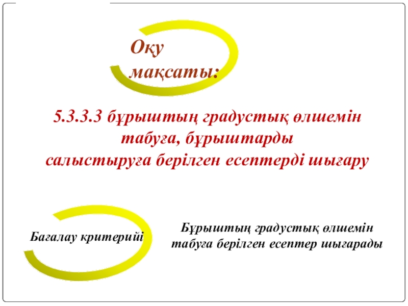 «9-дан төмен»- бұрыштың градустық өлшемін табуда ережені ескер« Талаптан»