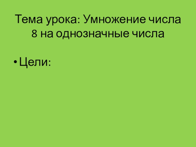 Тема урока: Умножение числа 8 на однозначные числаЦели: