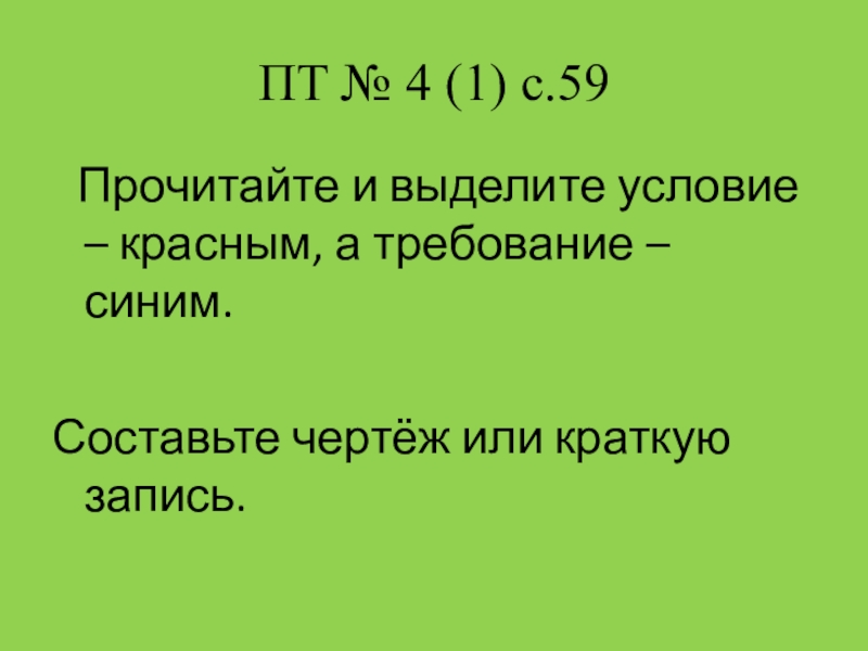 ПТ № 4 (1) с.59  Прочитайте и выделите условие – красным, а требование – синим.
