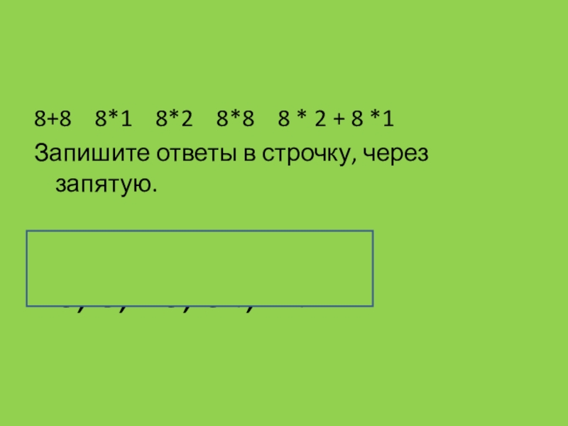 8+8  8*1  8*2  8*8  8 * 2 + 8 *1Запишите ответы в строчку,