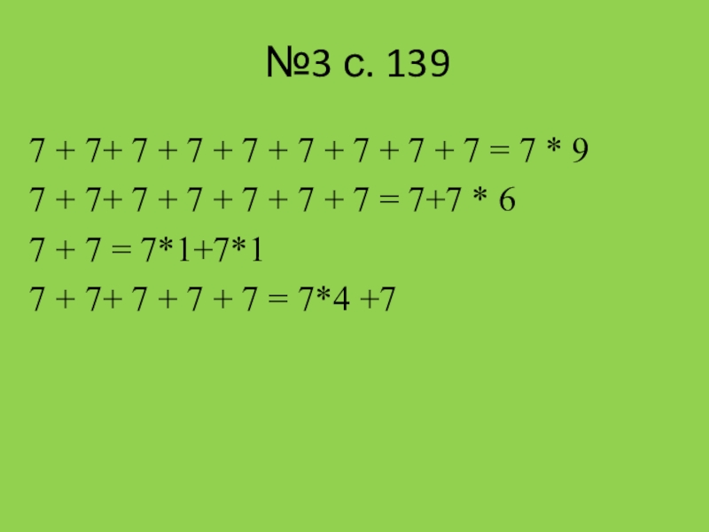 №3 с. 1397 + 7+ 7 + 7 + 7 + 7 + 7 + 7 + 7 = 7 * 97 + 7+ 7 + 7 + 7 + 7 + 7 = 7+7 *