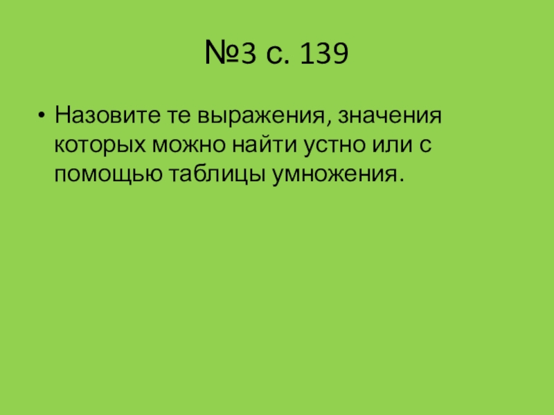 №3 с. 139Назовите те выражения, значения которых можно найти устно или с помощью таблицы умножения.
