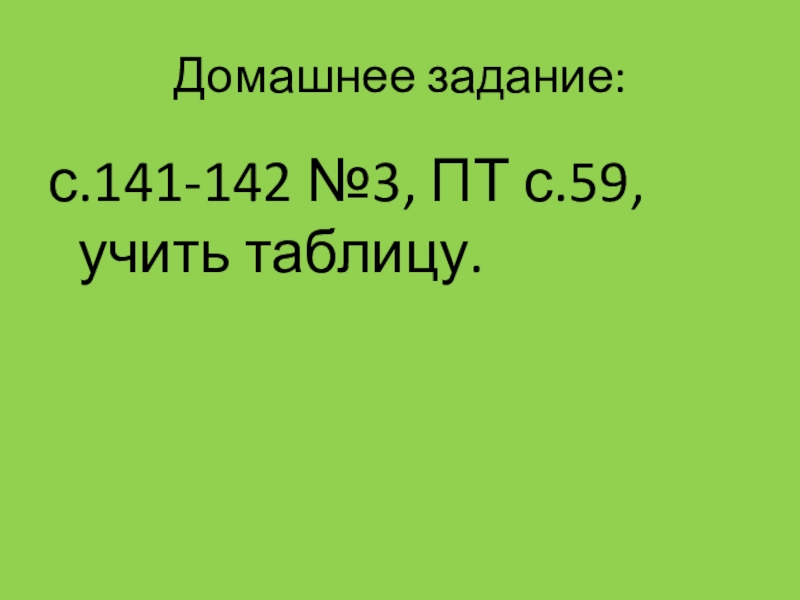 с.141-142 №3, ПТ с.59, учить таблицу.