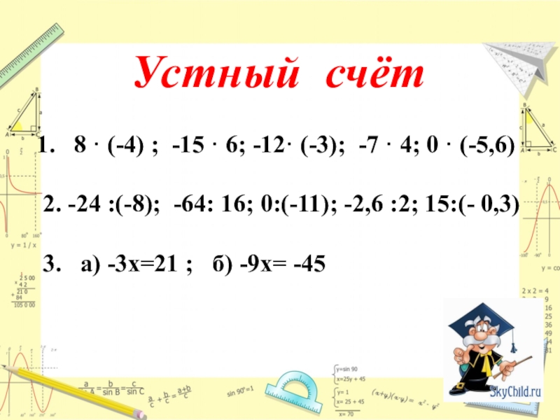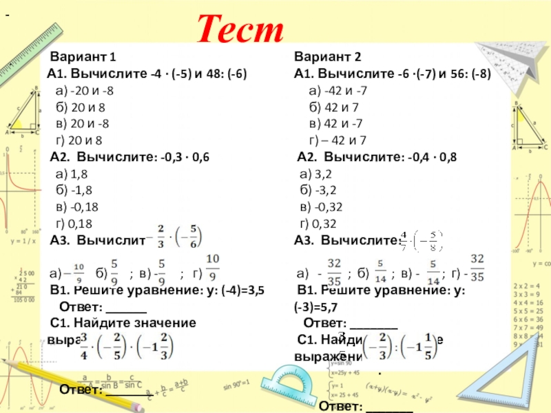 А1. Вычислите -6 ·(-7) и 56: (-8)