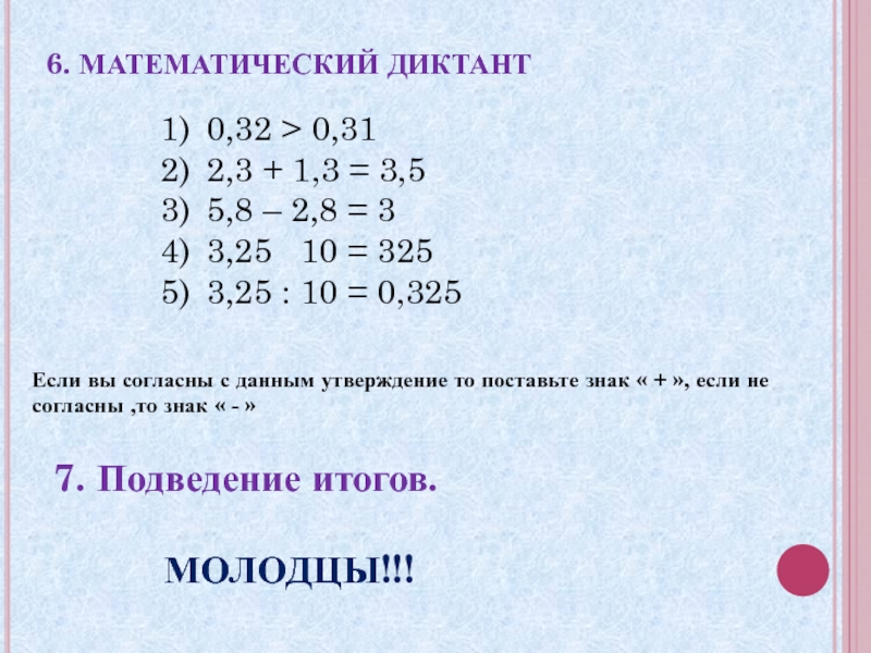 Если вы согласны с данным утверждение то поставьте знак « + », если не согласны ,то знак « - »