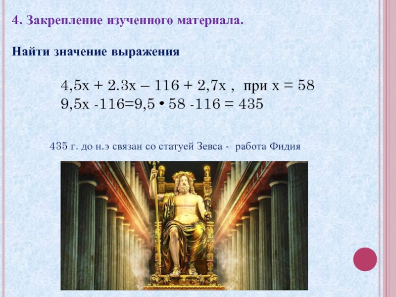 435 г. до н.э связан со статуей Зевса - работа Фидия