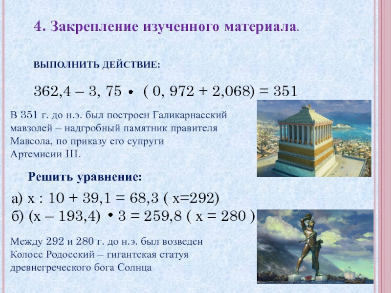 б) (х – 193,4) 3 = 259,8 ( х = 280 )