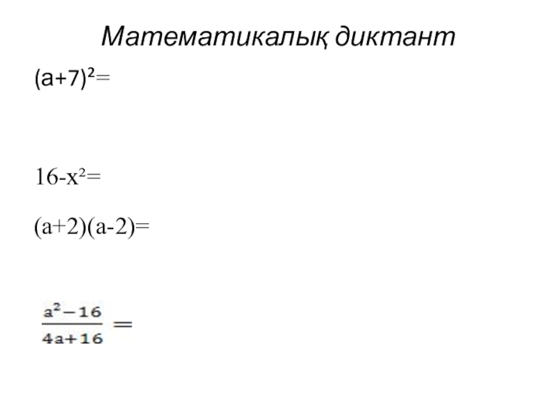 Математикалық диктант(а+7)²=16-х²=(а+2)(а-2)=